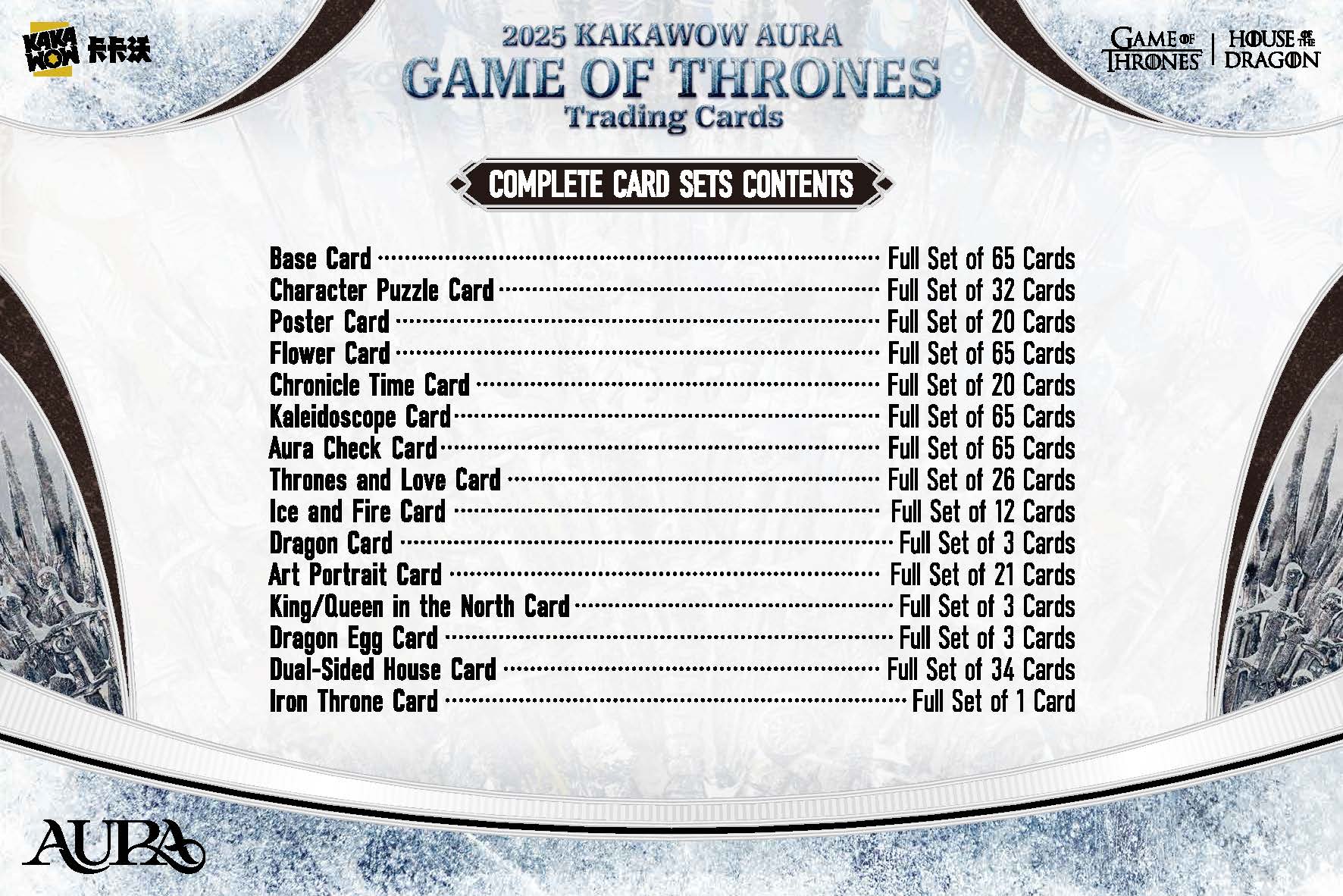 Kakawow Aura 2025 Game of Thrones : 10 paquets de 5 cartes.